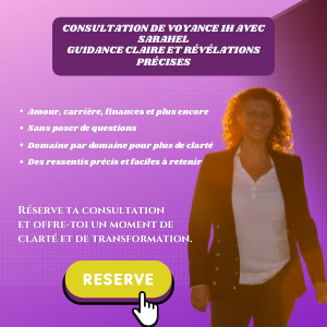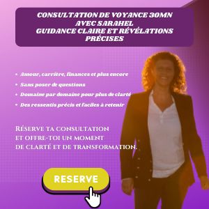 Je suis Sarahel Angel, Fondatrice de l'Académie des Voyants Professionnels, auteure, voyante, médium, praticienne en bioénergie, magnétiseuse et maître reiki depuis plus de 35 ans. Depuis ma plus tendre enfance, la spiritualité a été au cœur de ma vie, et ma mission est aujourd'hui de t'accompagner sur le chemin de ton éveil spirituel.